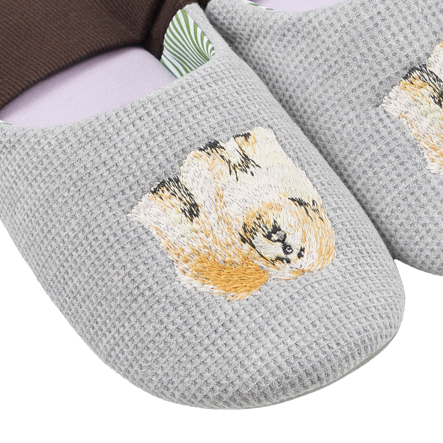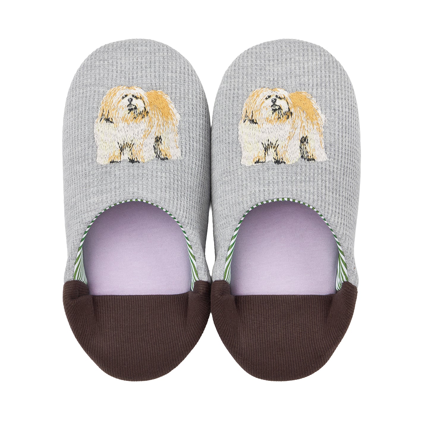 リアルなタッチで描いた犬たちを刺繍したバブーシュ。