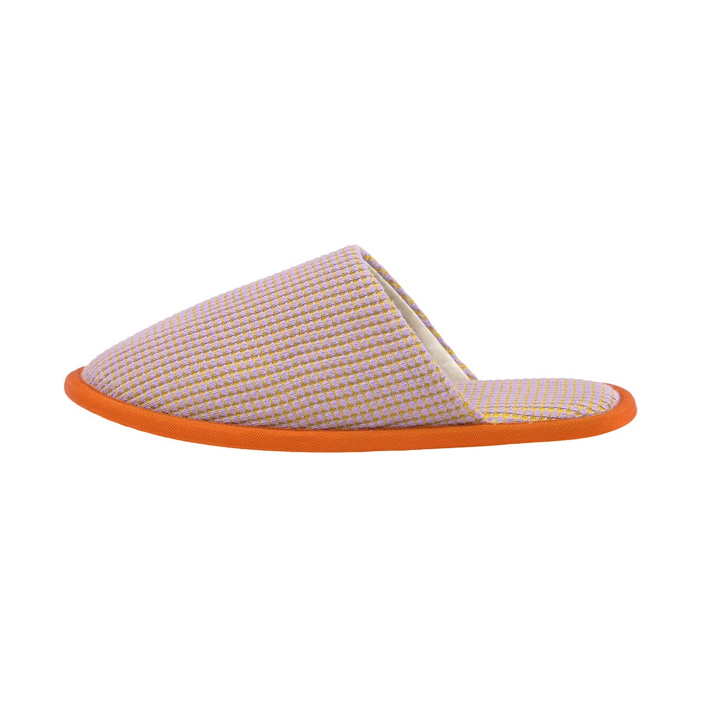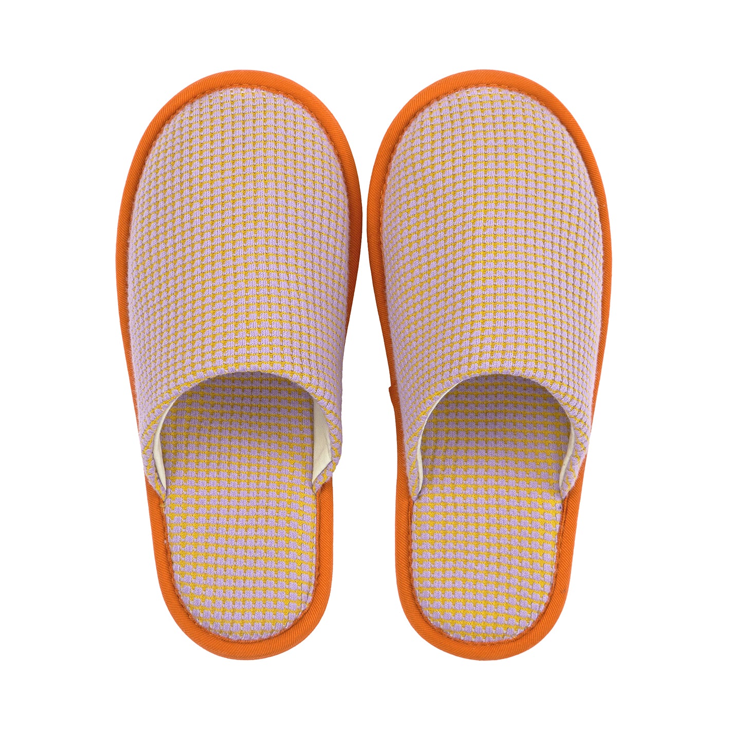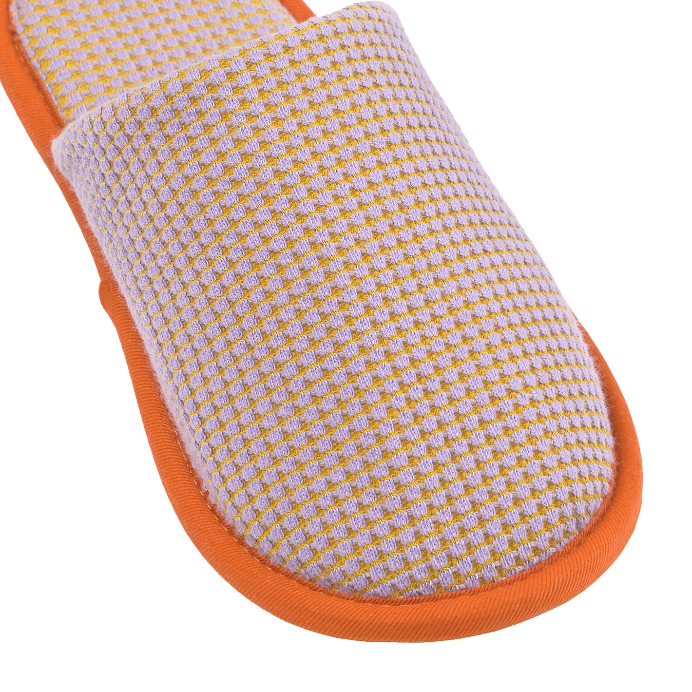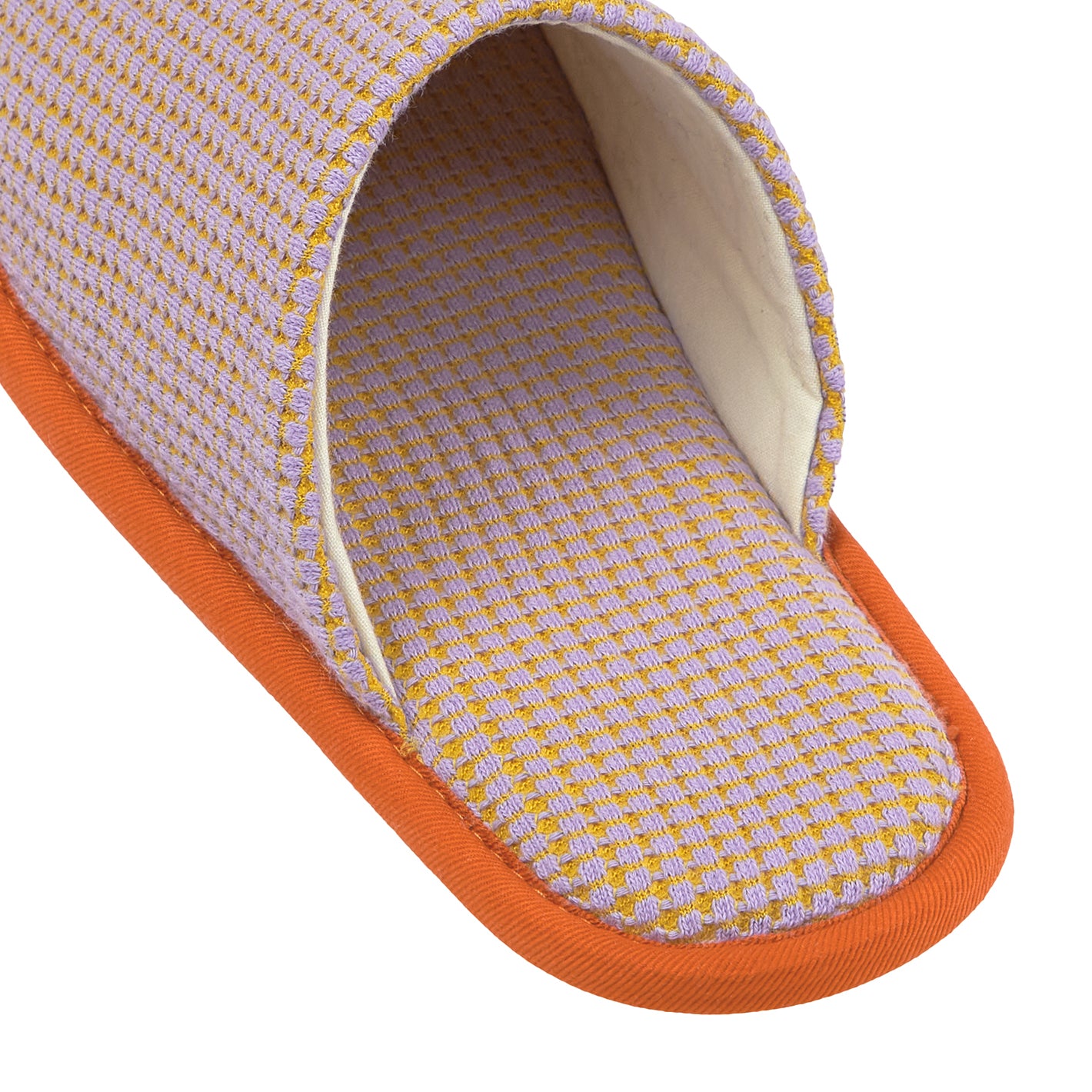 2色の糸で編み込んだ、ハニカム柄のスリッパ。