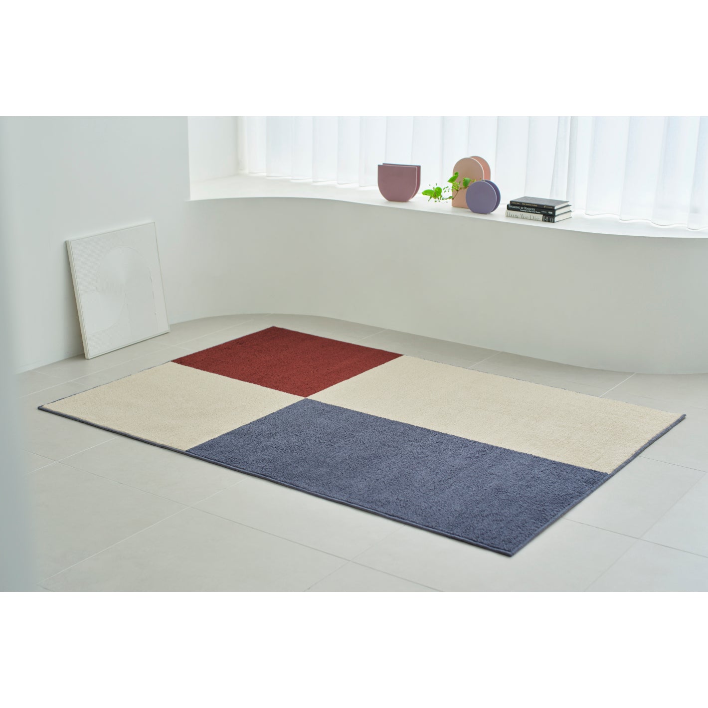 大胆に色を切り替えた、シンプルなデザインのラグ。