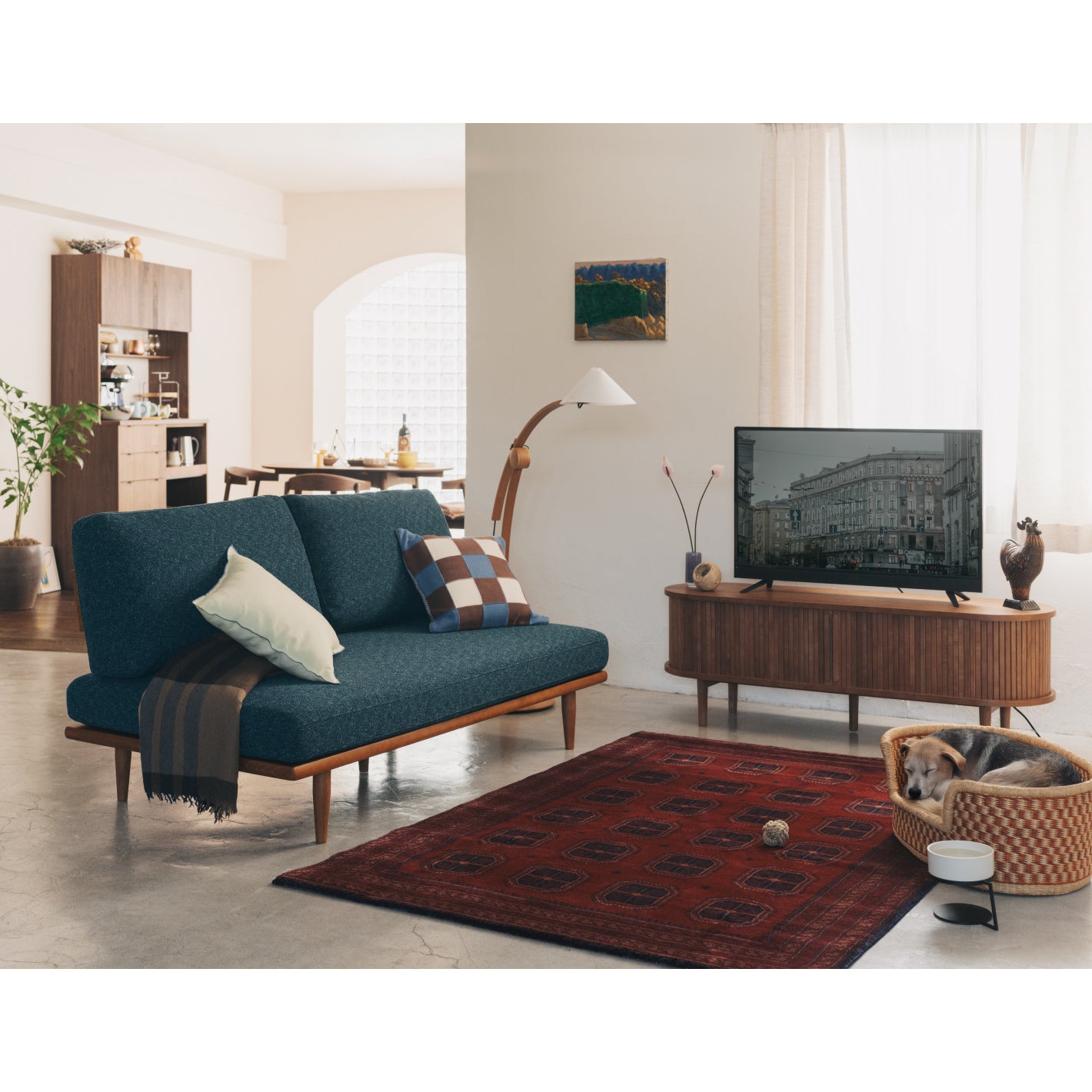 あぐらをかいたり、寝転んだり、さまざまな姿勢でくつろげる、奥行きの広いソファベッド。