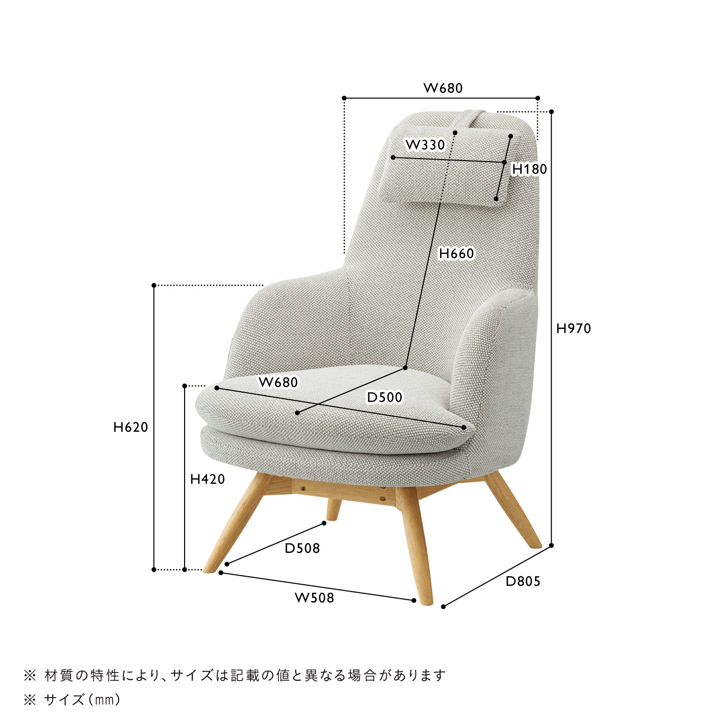 やわらかく丸みを帯びた座面と、オーク材の脚部がやさしい印象に。