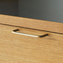 やわらかな曲線が印象的な木引手、または温かみのある真鍮の引手から、お好みでお選びいただけます。