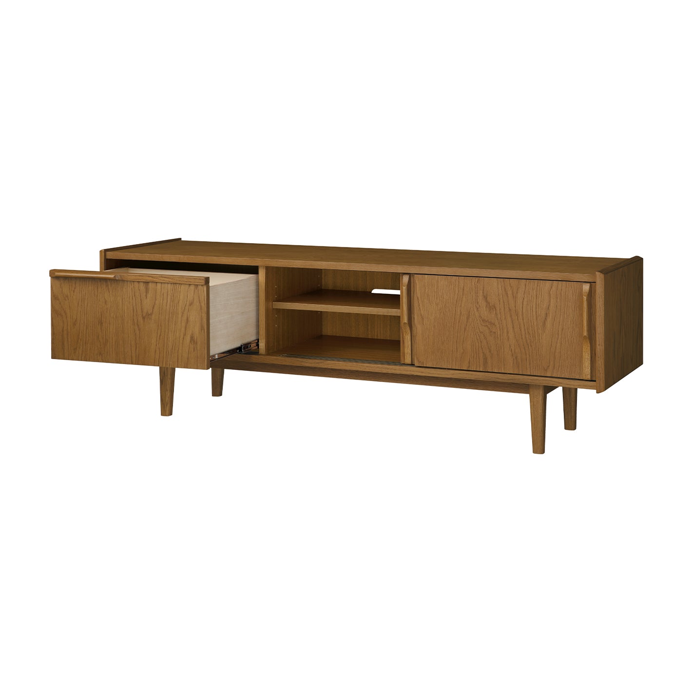引き戸部分は棚板付きで、棚板を取り外せばAV機器を収納できます。