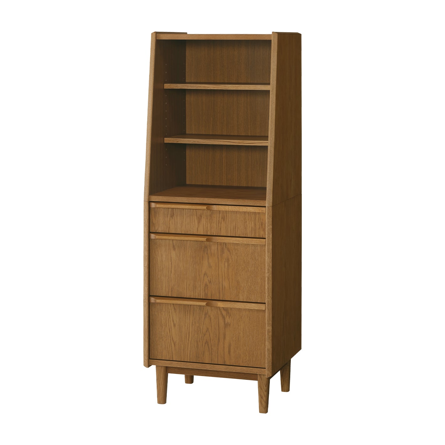 傾斜をつけた圧迫感の少ないデザインで、リビングや寝室など、置く場所を選ばずにお使いいただけます。