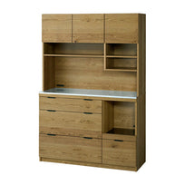 こちらは、ADDAYキッチンボードのオープン部分を引き出し仕様に変更したカスタムオーダー品です。スライド棚を引き出しにすることで、木目や節など、木の表情を生かしたよりカジュアルな雰囲気を楽しめます。