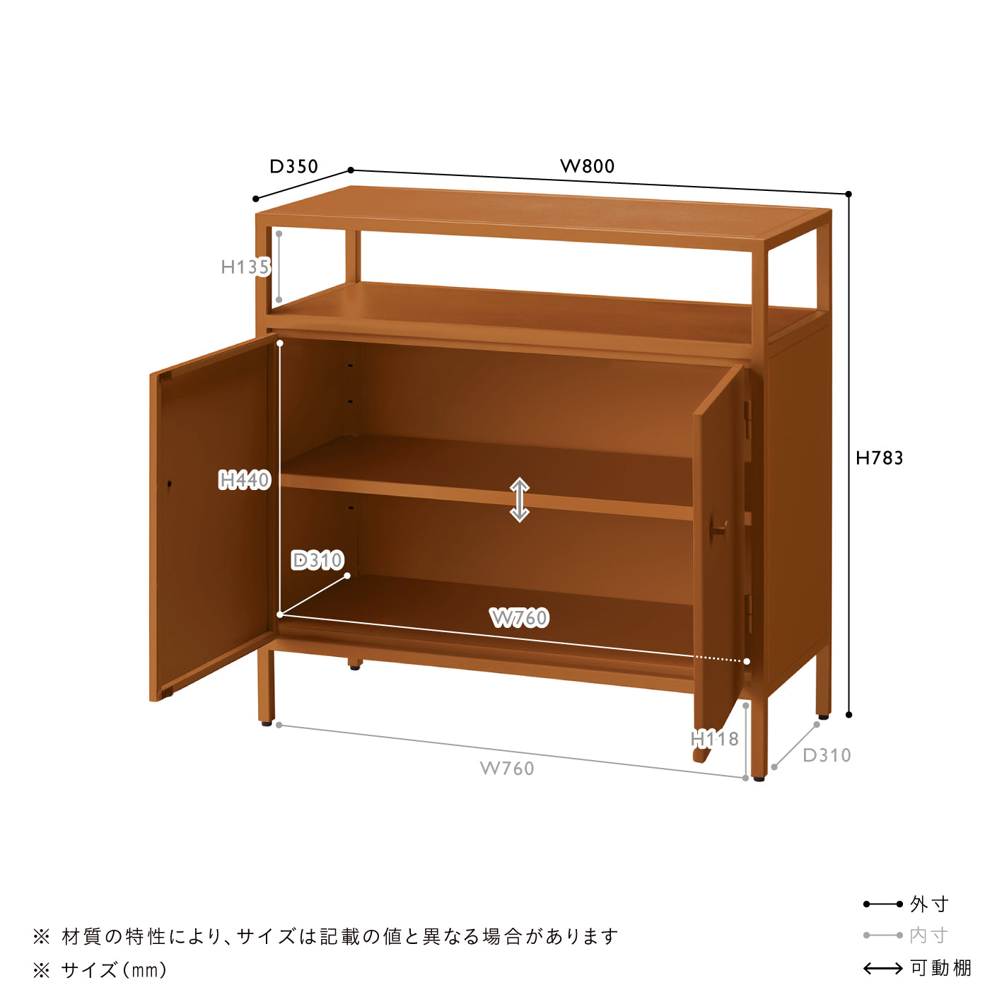 アイアン素材とカラーが、空間のアクセントになるキャビネット。