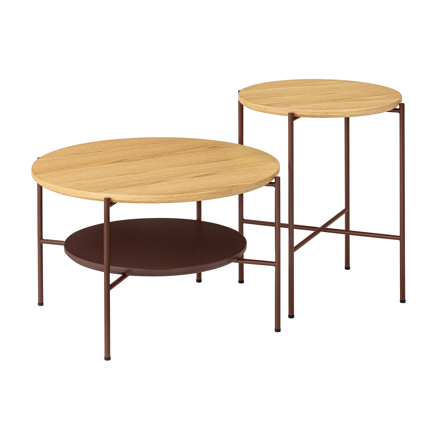 ナチュラルなオーク材に、ブラウンカラーのアクセントを加えたローテーブル。
