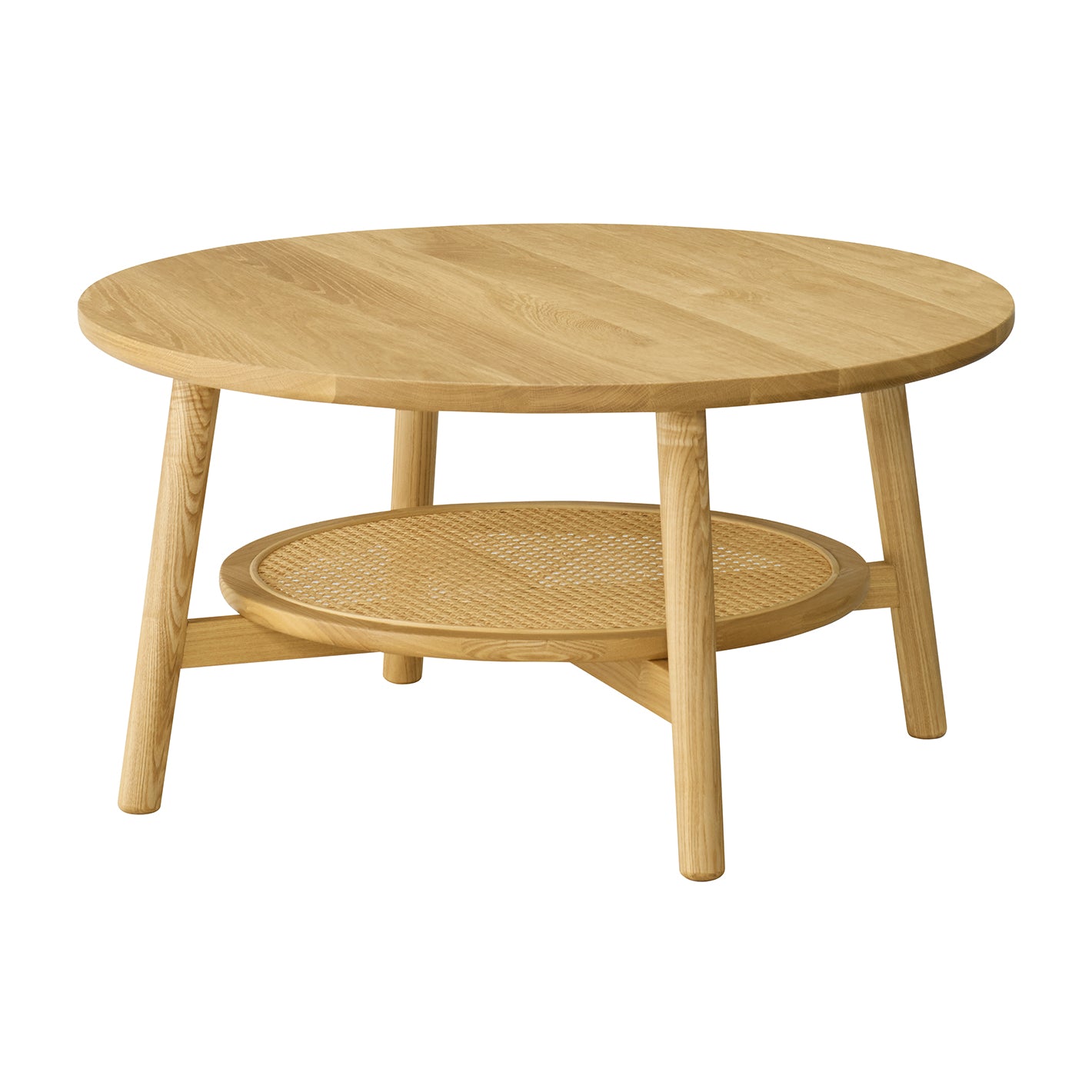 ナチュラルな木目とラタンを合わせた素材感が魅力のローテーブル。