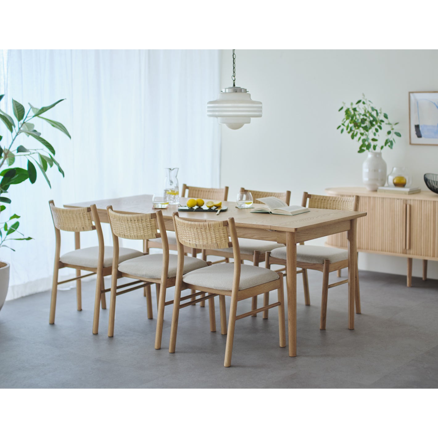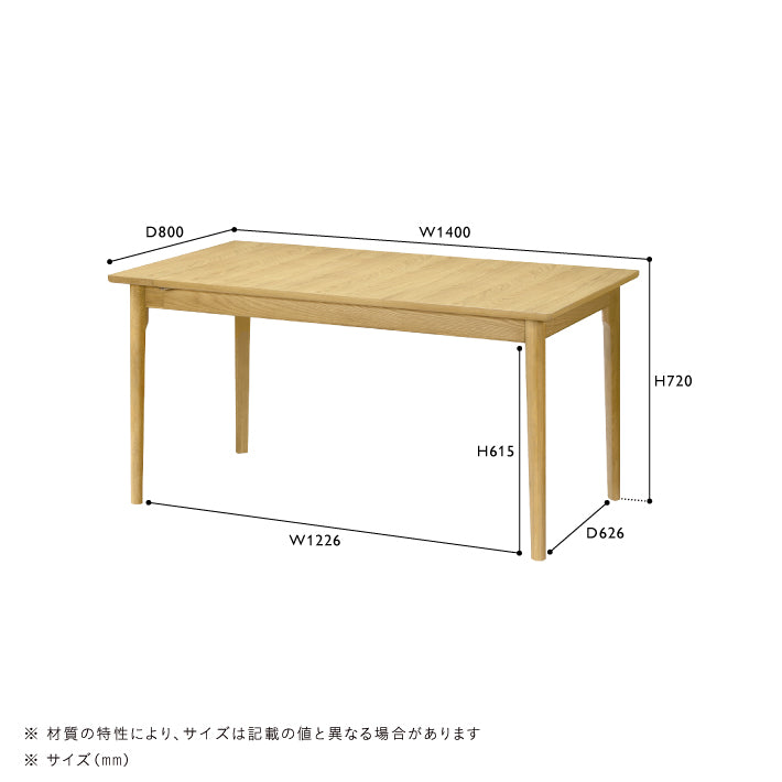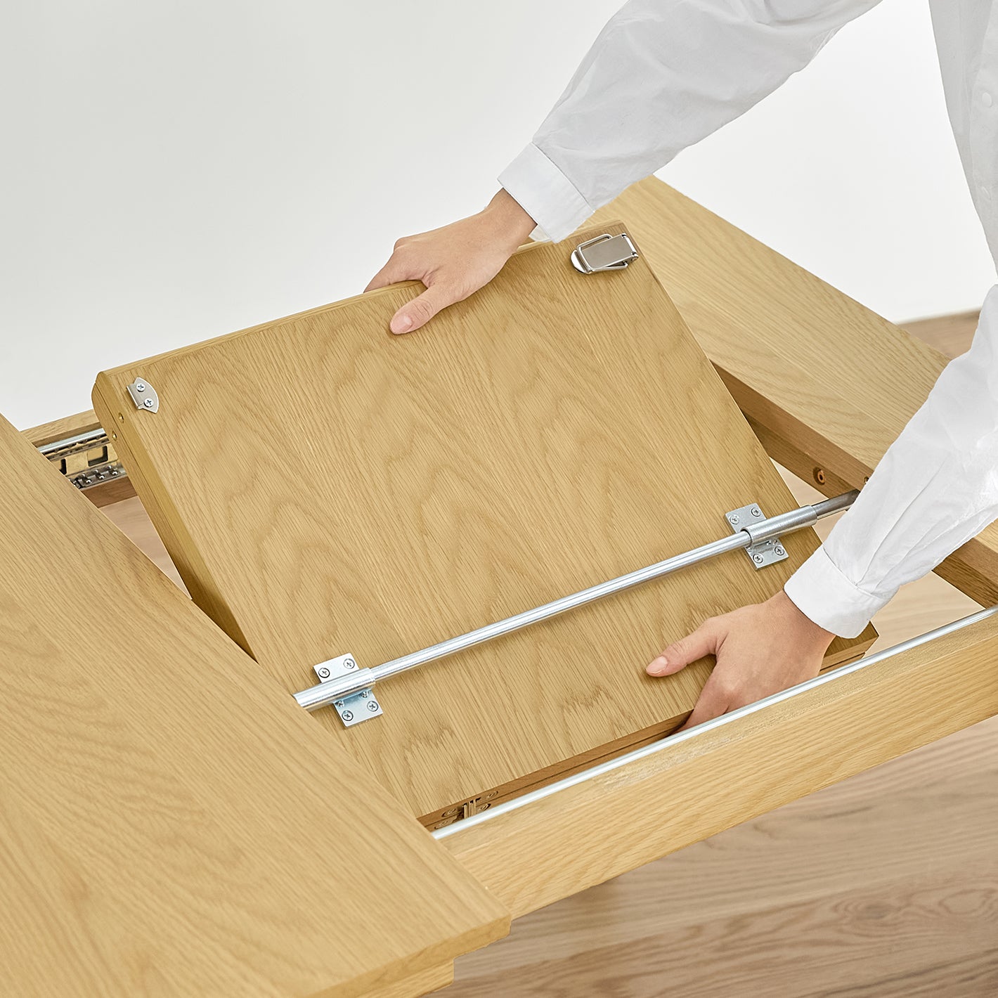 天然木の豊かな風合いを生かした、長方形のエクステンションテーブル。