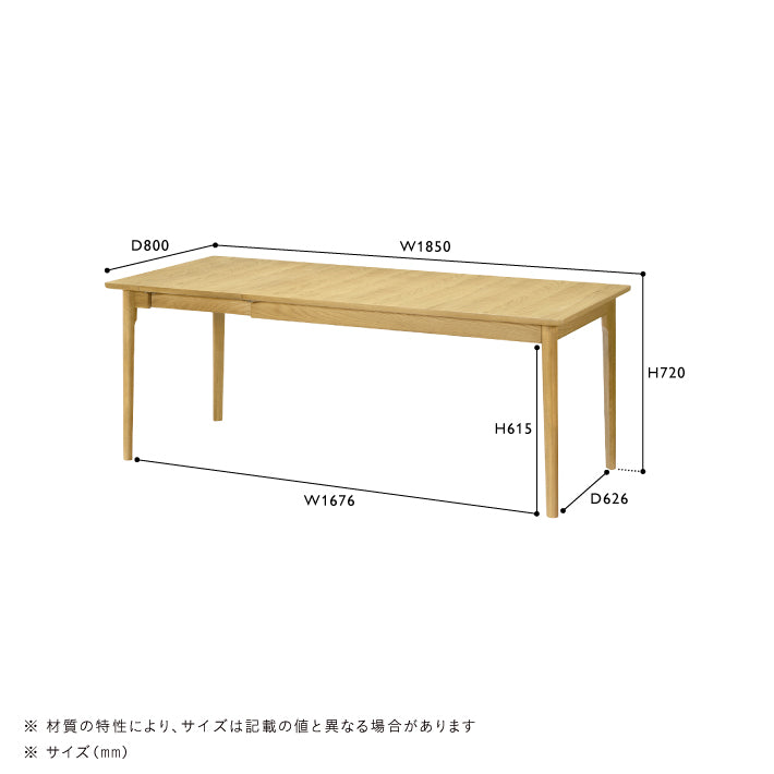 W1850まで天板を広げることができ、最大まで伸長すると6人で使えるサイズ感に。