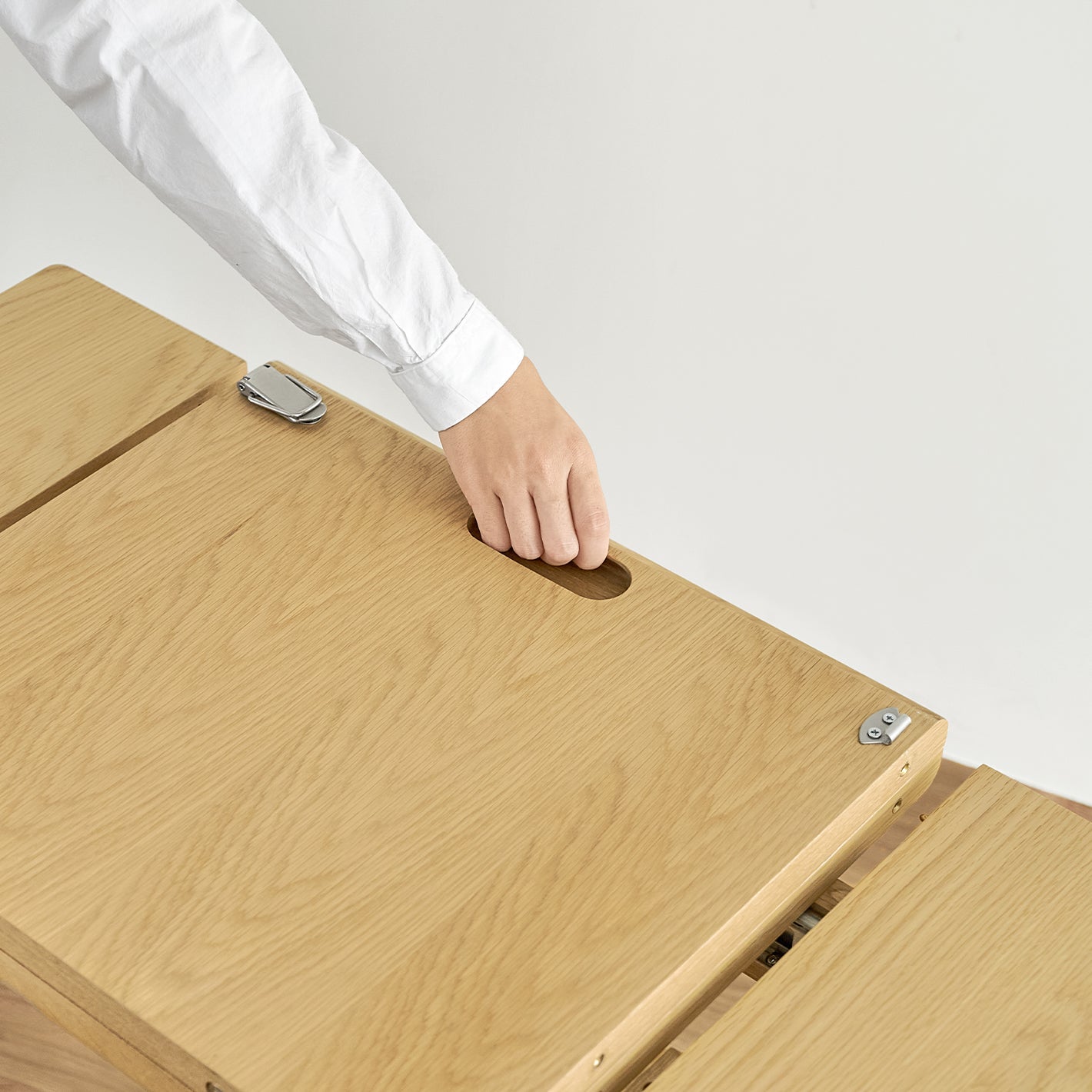 中天板はテーブルの下にしまえるので、収納場所をとりません。