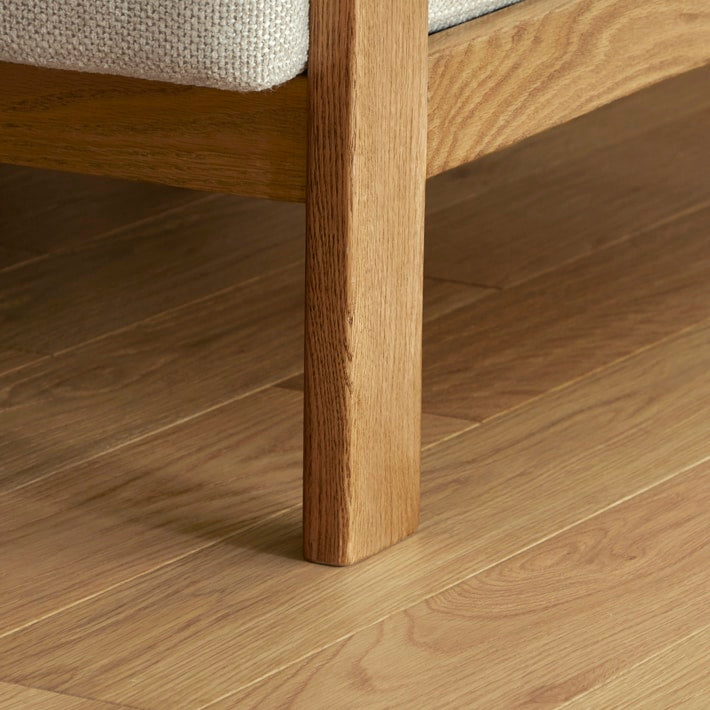 ほどよい硬さの座面と、フェザー入りのやわらかな背クッションで包み込まれるような座り心地を楽しめます。