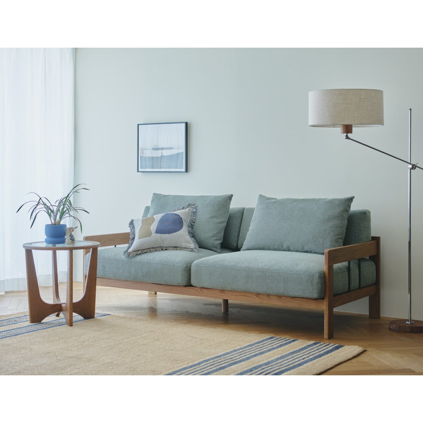オーク材とアイアンの異素材をミックスした、カジュアルでスタンダードなソファ。
