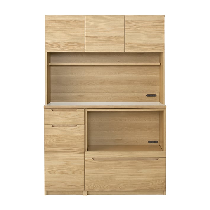 オーク材のナチュラルな素材感を生かした、飽きのこないシンプルなデザインのキッチンボード。