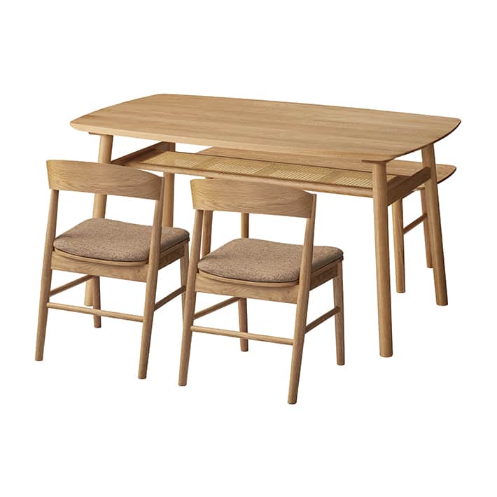 ナチュラルな木目とラタンを合わせた素材感が魅力のダイニング。