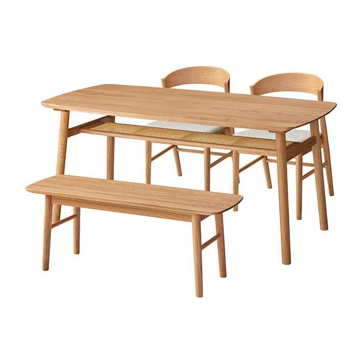 ナチュラルな木目とラタンを合わせた素材感が魅力のダイニング。