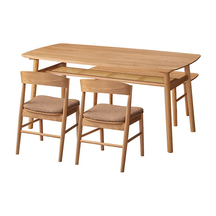 ナチュラルな木目とラタンを合わせた素材感が魅力のダイニング。
