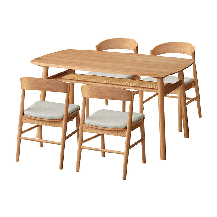 ナチュラルな木目とラタンを合わせた素材感が魅力のダイニング。