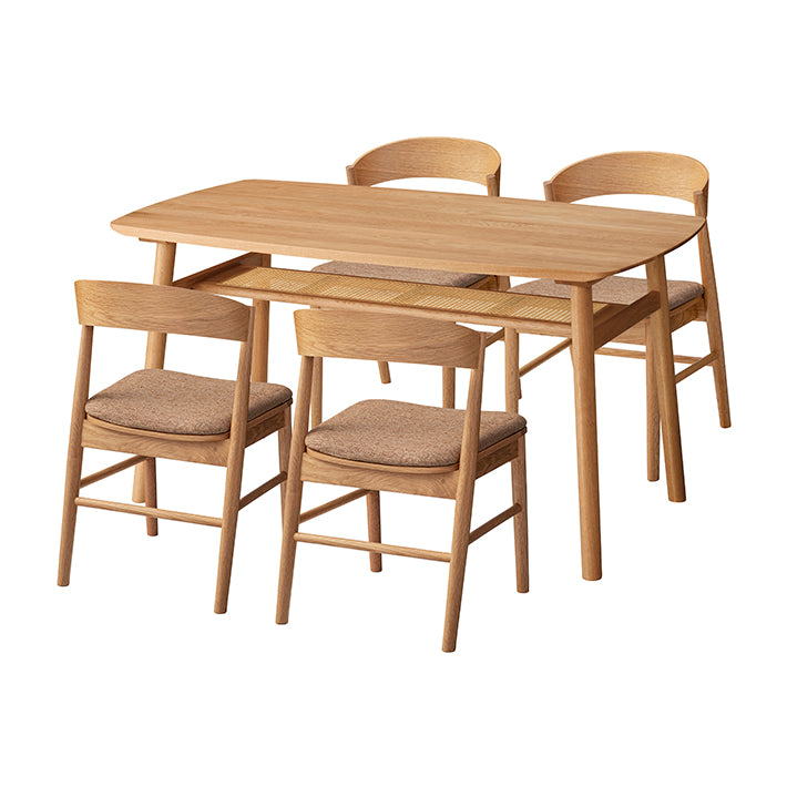 ナチュラルな木目とラタンを合わせた素材感が魅力のダイニング。