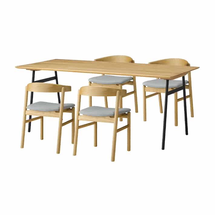 テーパー加工を施した軽やかなフォルムと、オーク材のナチュラルな風合いが魅力です。