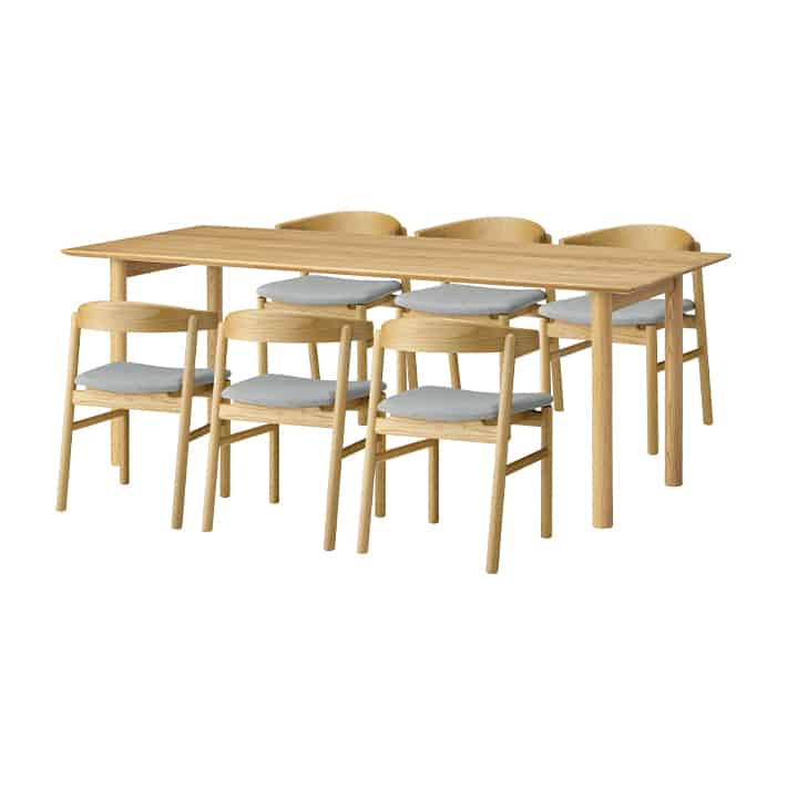 直線的でシャープなフォルムと、オーク材のナチュラルな風合いが魅力です。