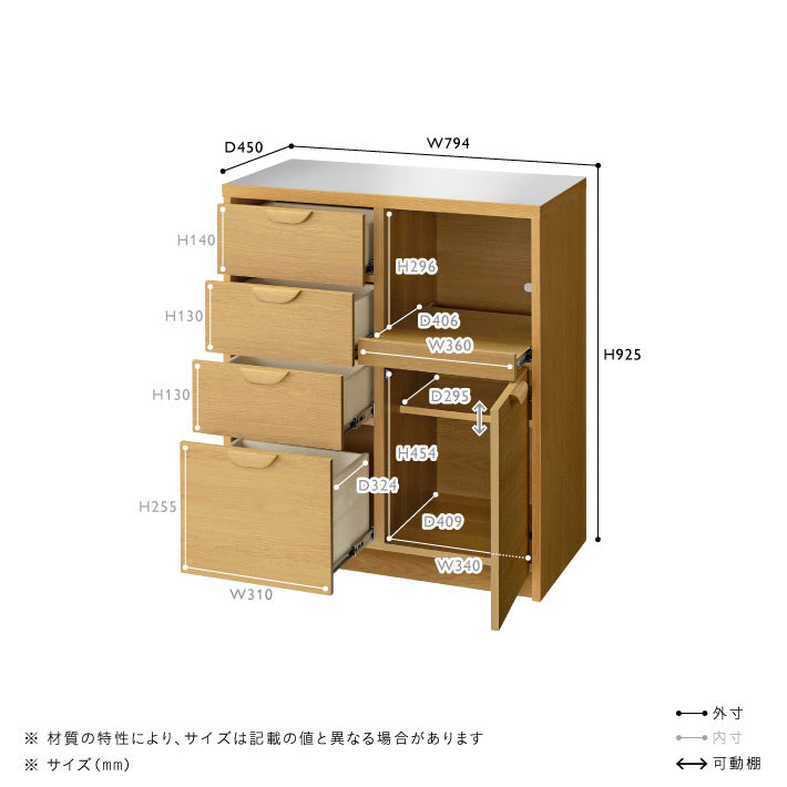 カトラリーや小皿などをしまいやすい、4段の引き出しを備えた収納力の高さも魅力です。