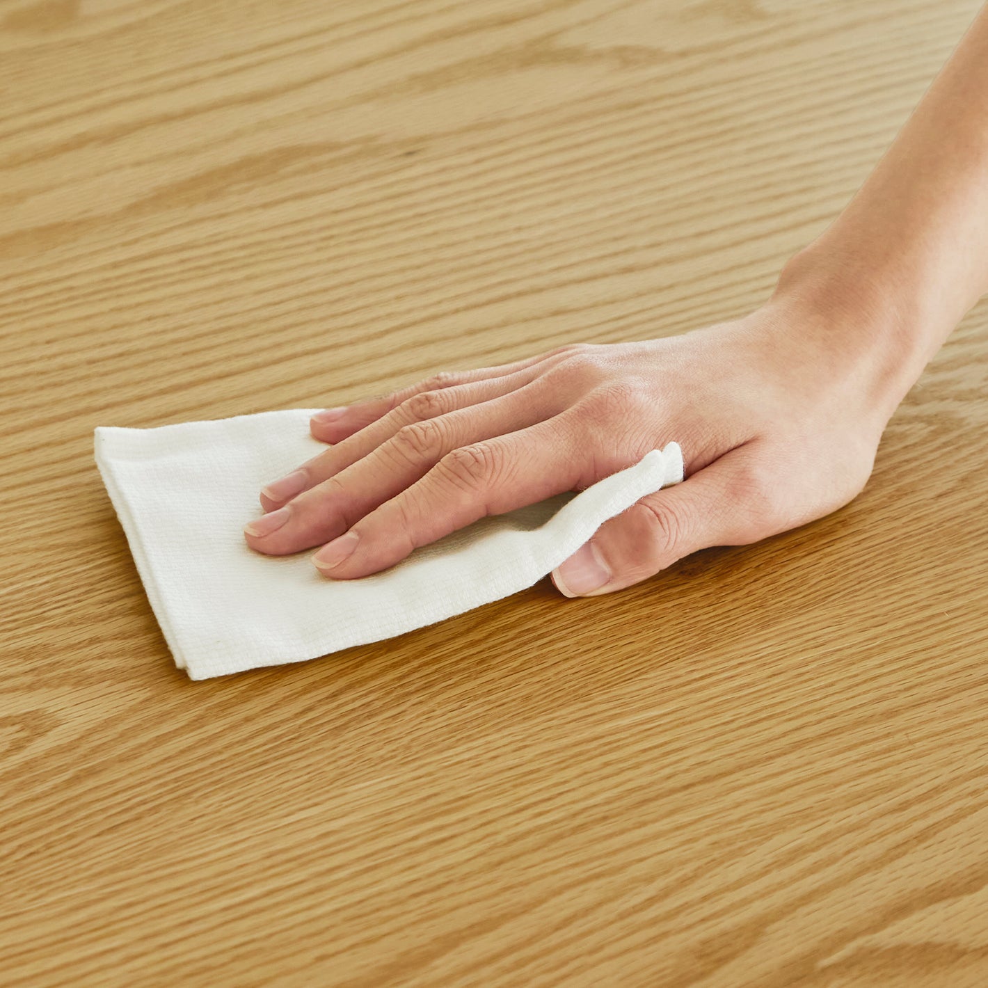 天板にはウレタン樹脂塗装を施しているので、水や汚れが染み込みにくく、乾いた布で簡単に拭き取れます。