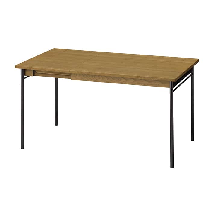 オーク材とアイアンをミックスした、カジュアルな印象のエクステンションテーブル。