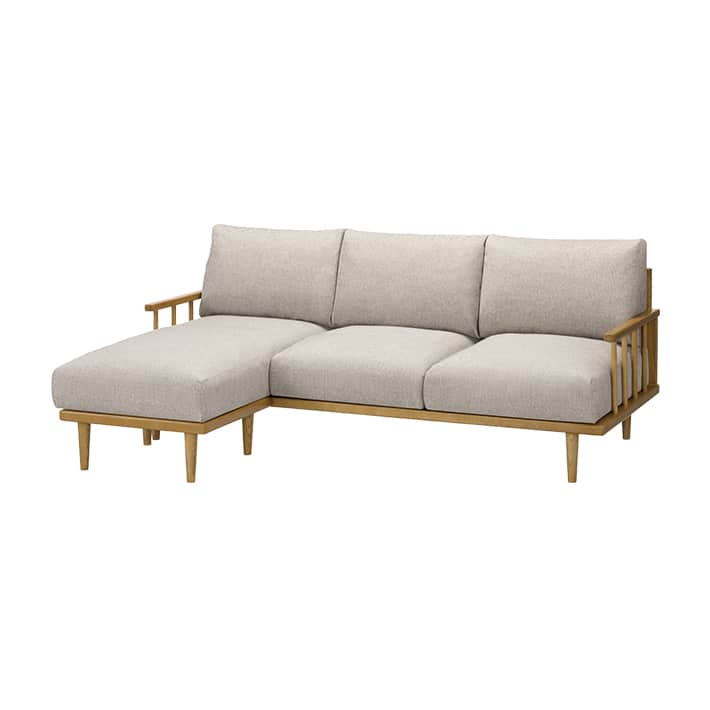 フレームにアッシュ材を贅沢に使用した、木のナチュラルなぬくもりとカジュアルな雰囲気を楽しめるソファ。
