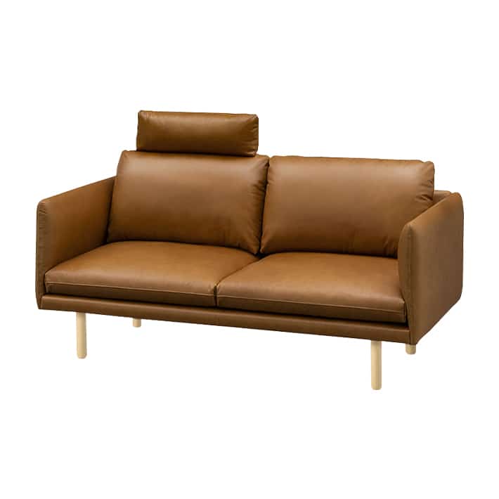 細身のアームや脚部が、すっきりときれいめな印象のレザーソファ。