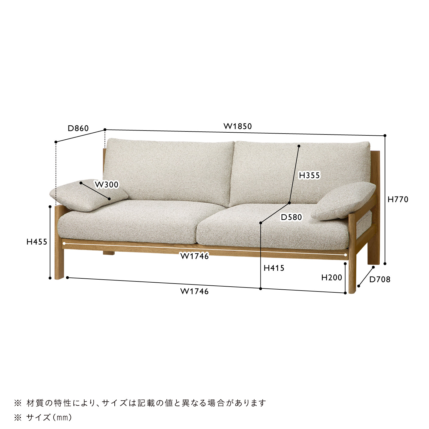フレームにオーク材を使用した、木の素材感を楽しめるデザイン。お部屋に馴染みやすい、中間色のカラーです。