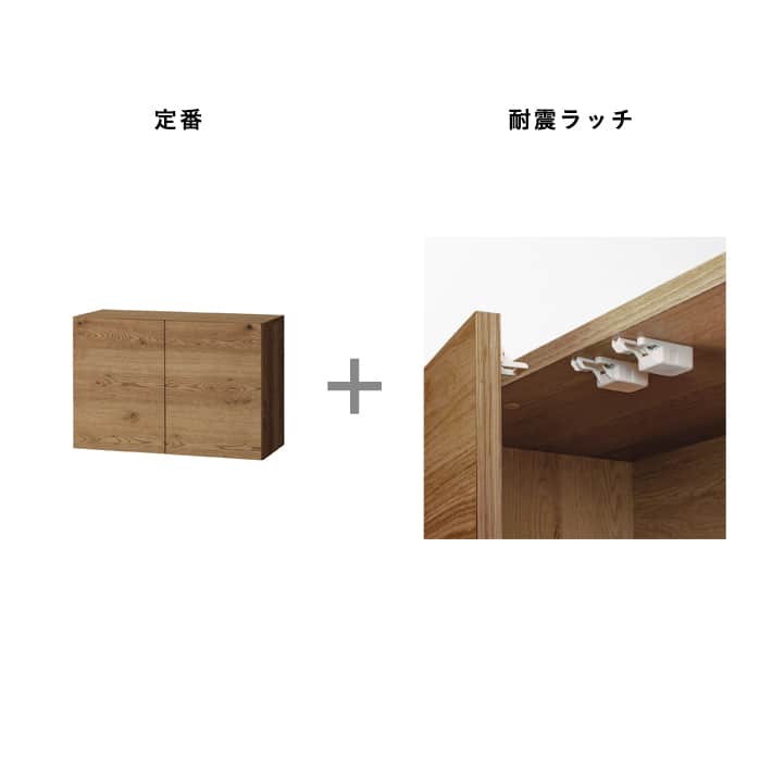 こちらは、ADDAYアッパーキャビネットに耐震ラッチを付けたカスタムオーダー品です。
