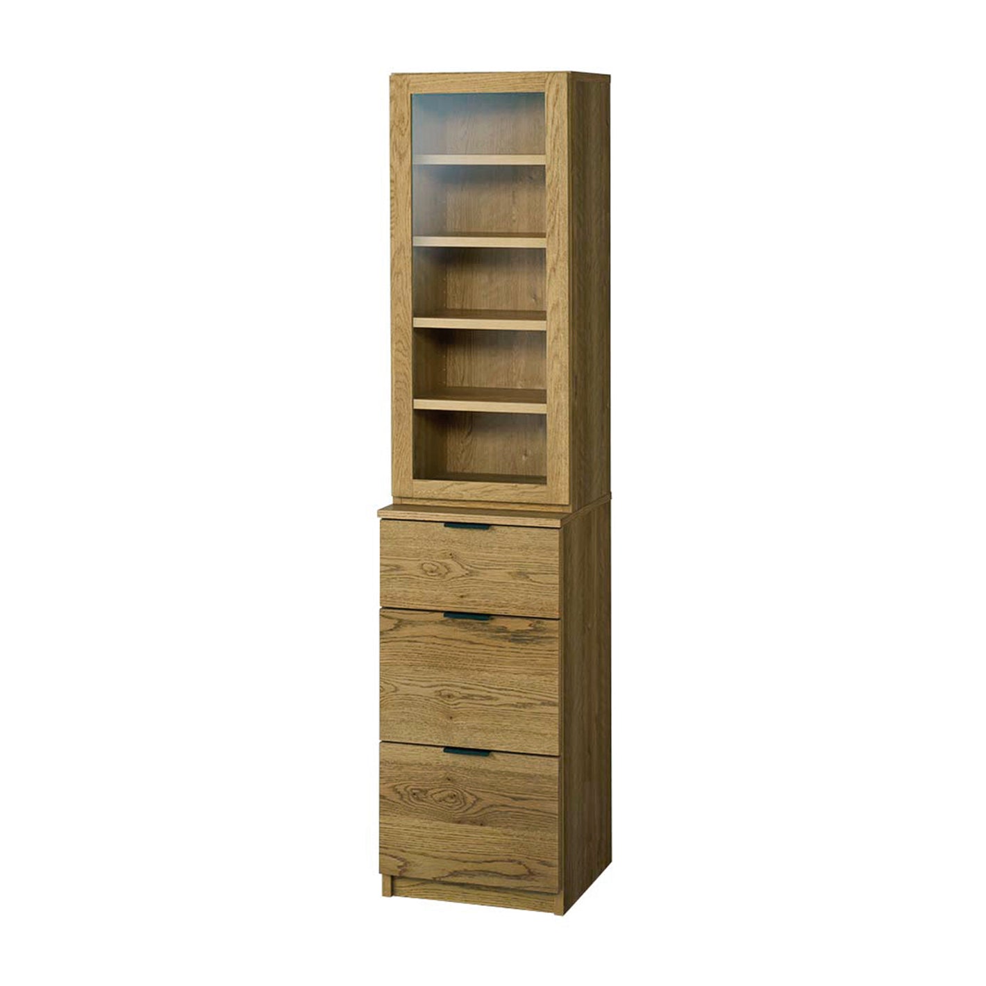 木目や節など、木の表情を生かしたカジュアルな印象のカップボード。