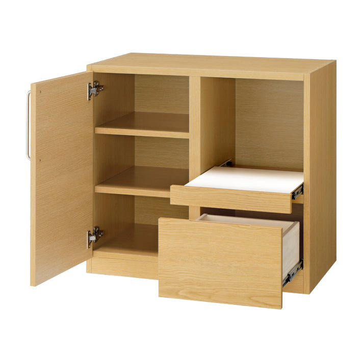 家電などをすっきりと収納できる、機能的なスライド棚も備えています。