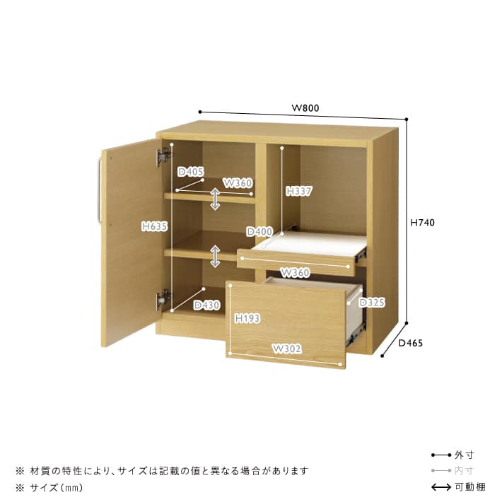棚板の位置を変えられる可動棚。収納する物に合わせてお好みの位置に調整できます。
