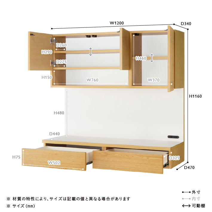 棚板の位置を変えられる可動棚。収納する物に合わせてお好みの位置に調整できます。
