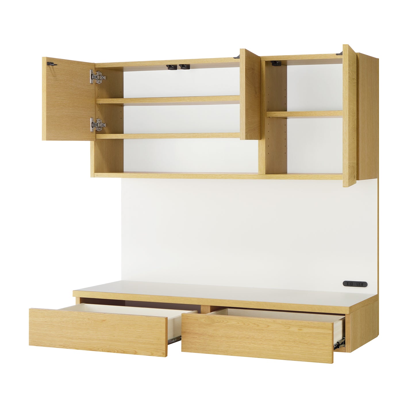天板には、抗菌・防臭・抗ウイルス機能を備えたメラミン(AICA ウィルテクトplus)化粧板を使用。水や食事などをこぼしても、簡単に拭き取れます。