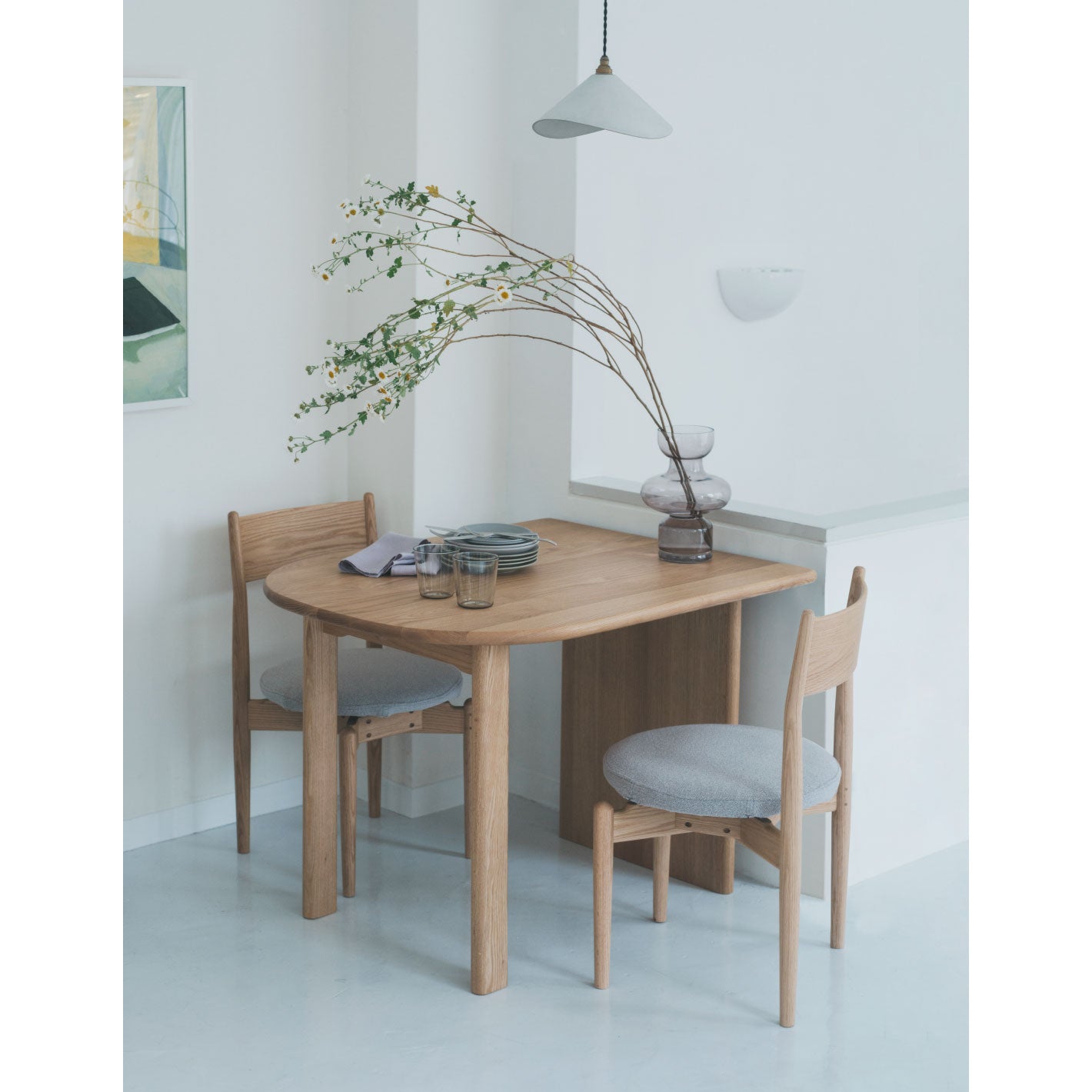 素材本来の木目や曲線のラインが特徴の、新しい北欧スタイルのダイニングテーブル。