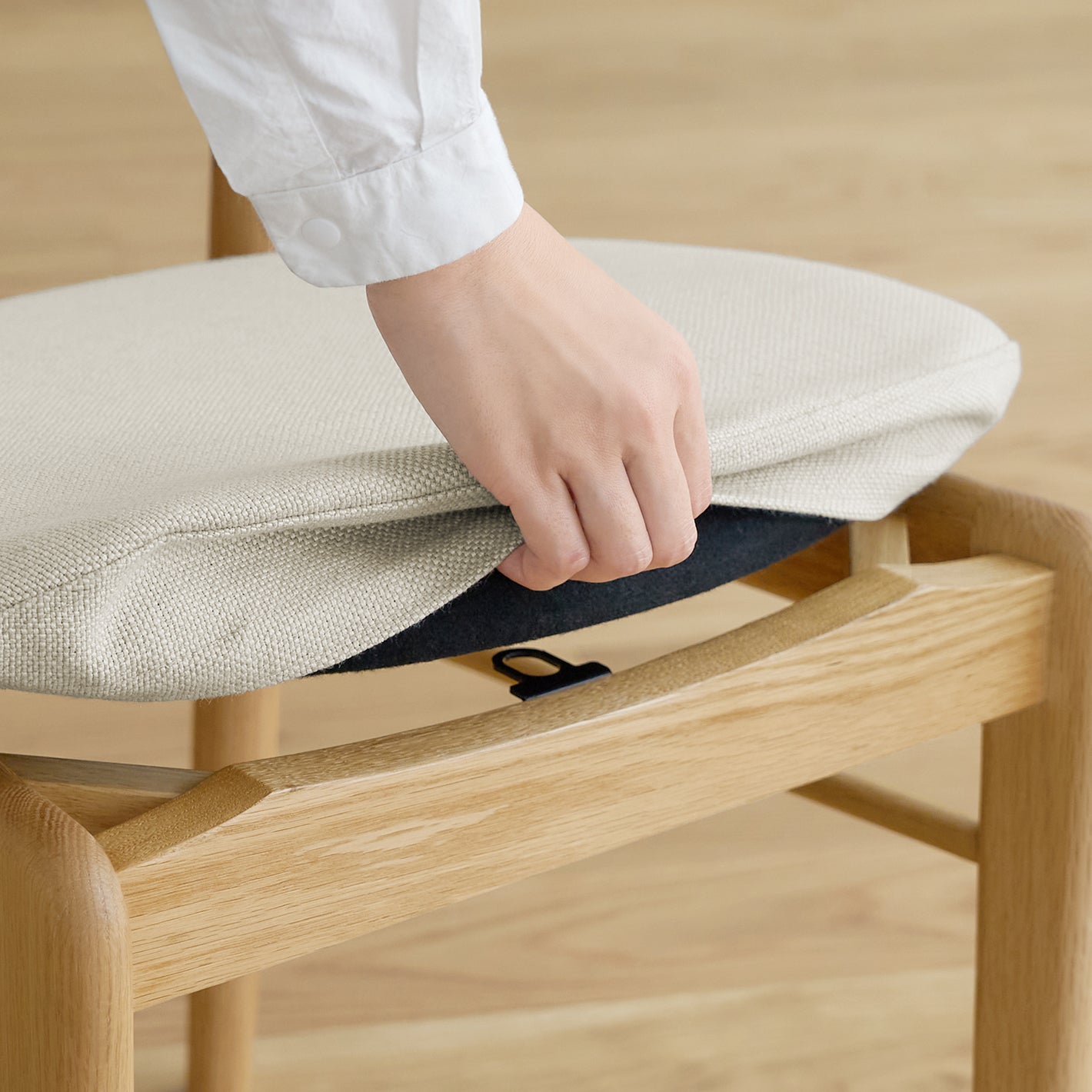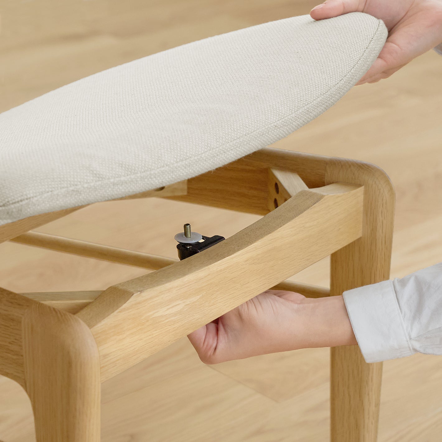 座面は工具なしで取り外すことができるので、チェアカバーの掛け替えなども簡単です。