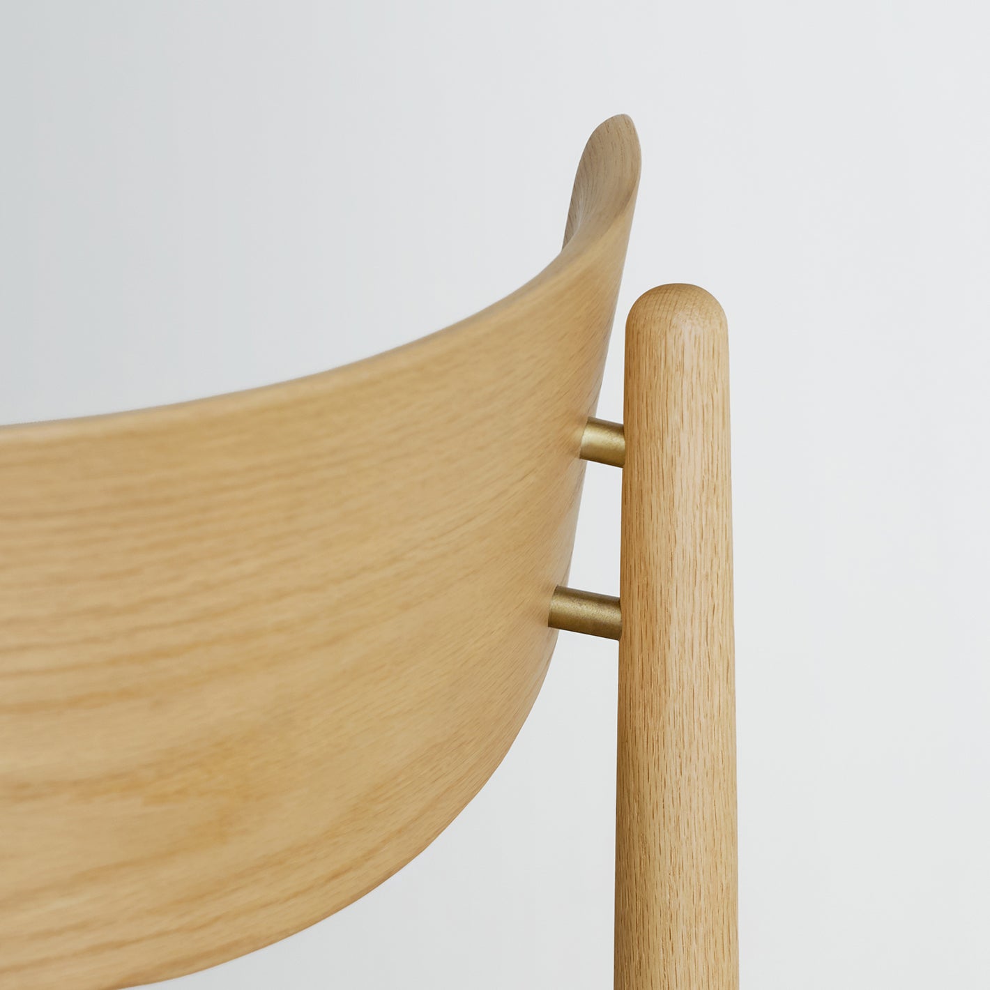 背板と後脚をつなぐ真鍮色のパーツが、さりげないアクセントになっています。