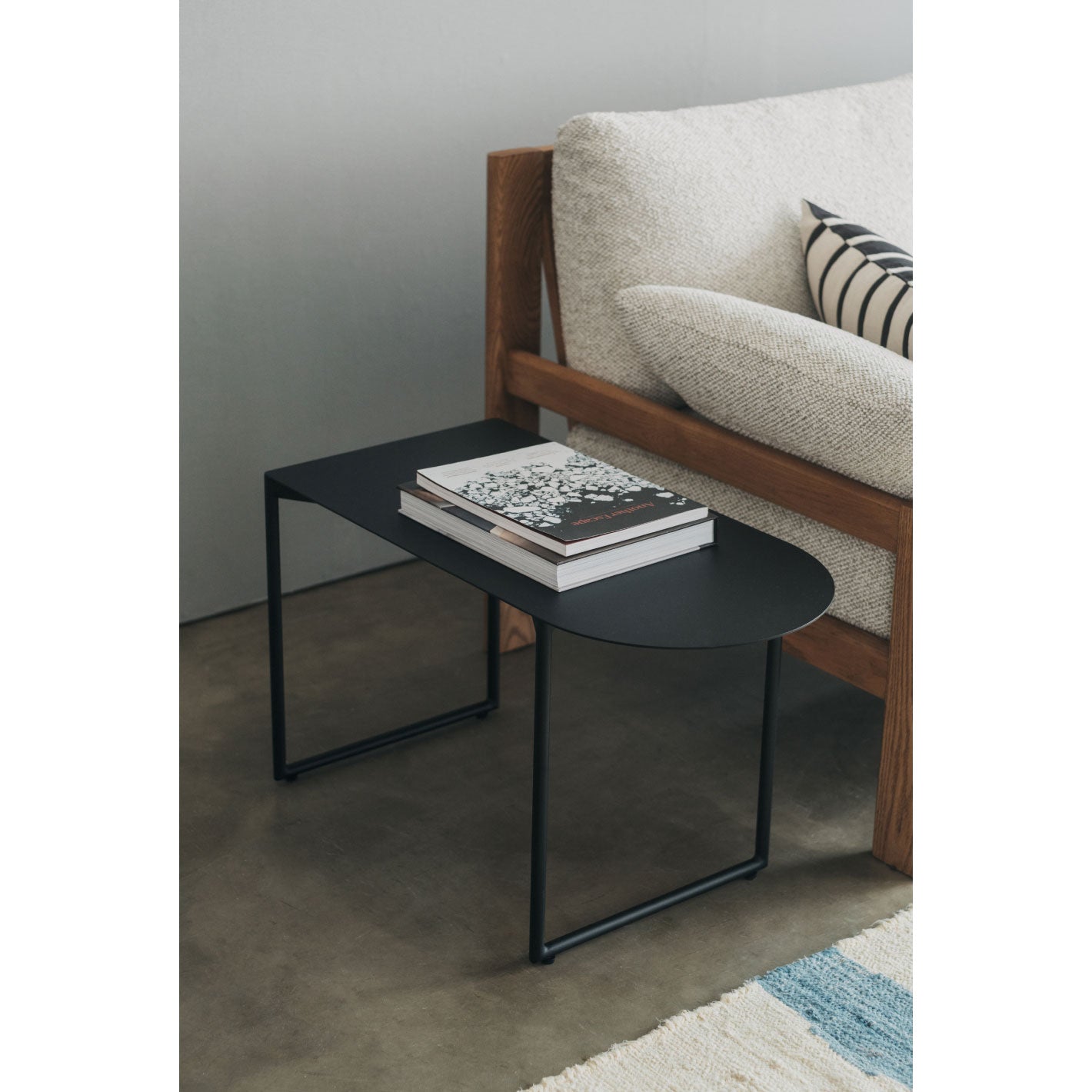 空間を引き締める、ブラックカラーのアイアンローテーブル。