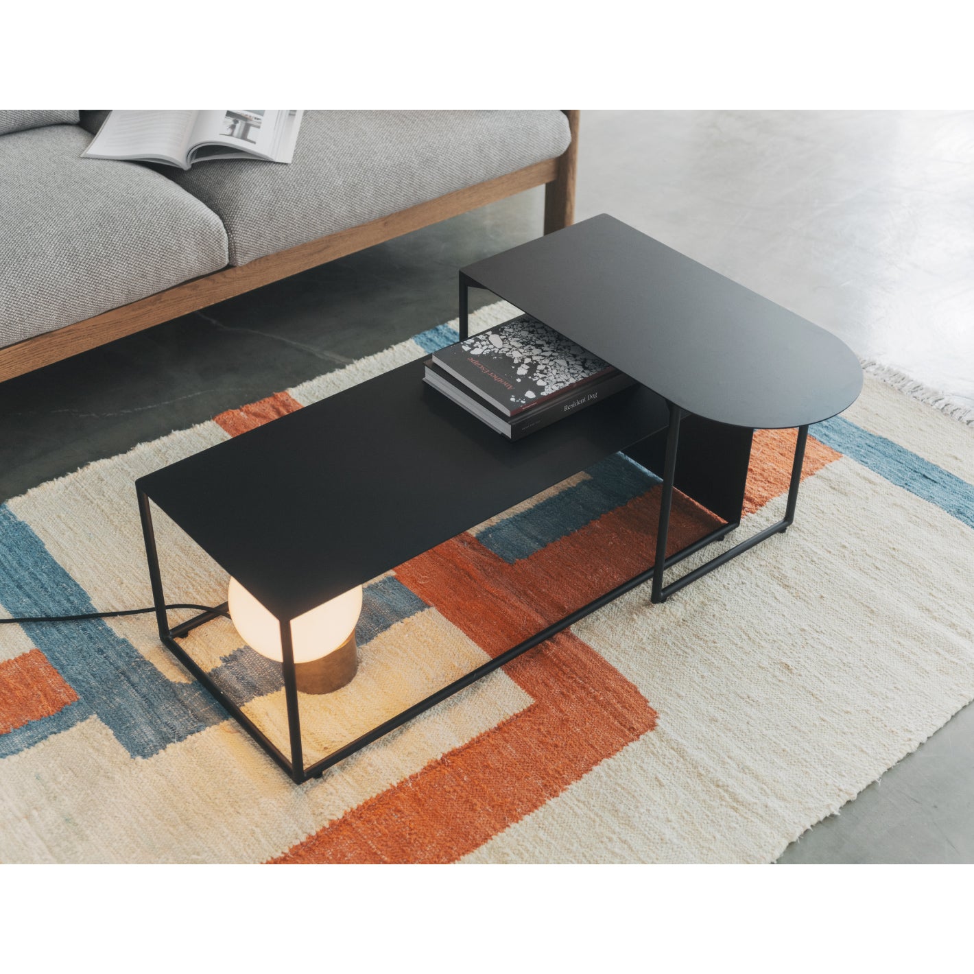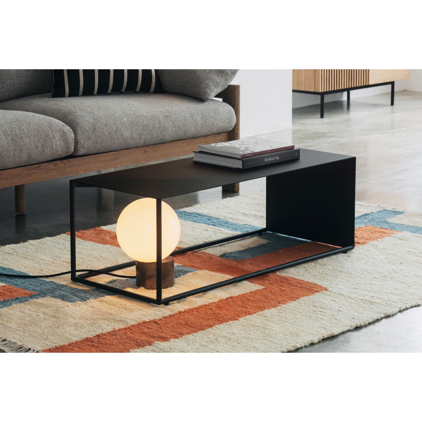 空間を引き締める、ブラックカラーのローテーブル。