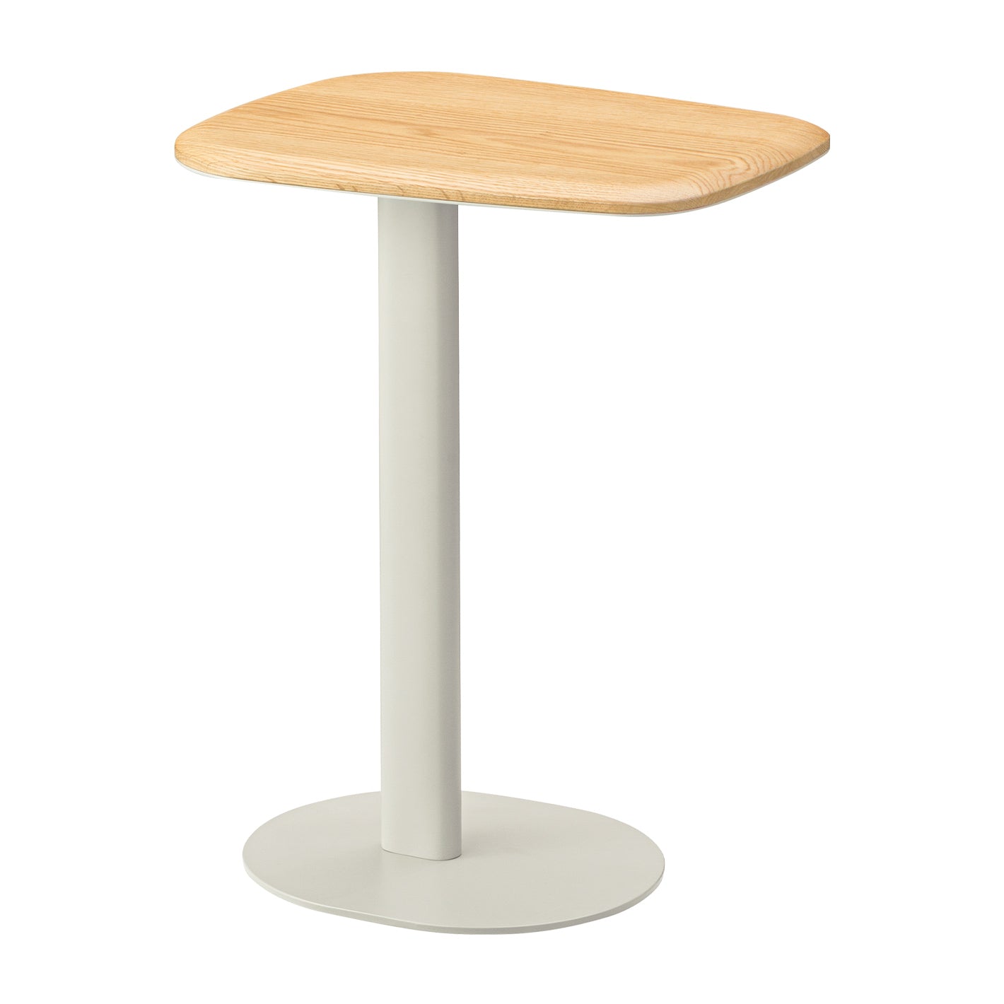 天板、アイアンの支柱、底面のすべてに丸みを持たせたデザインで