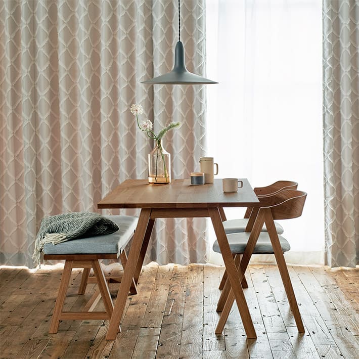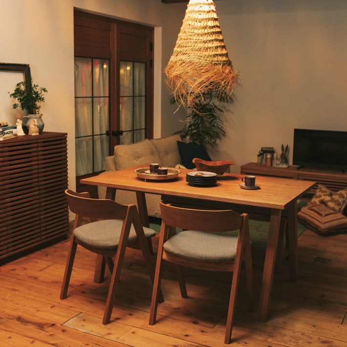 オーク材を使用した、木のぬくもりを楽しめるダイニングテーブル。