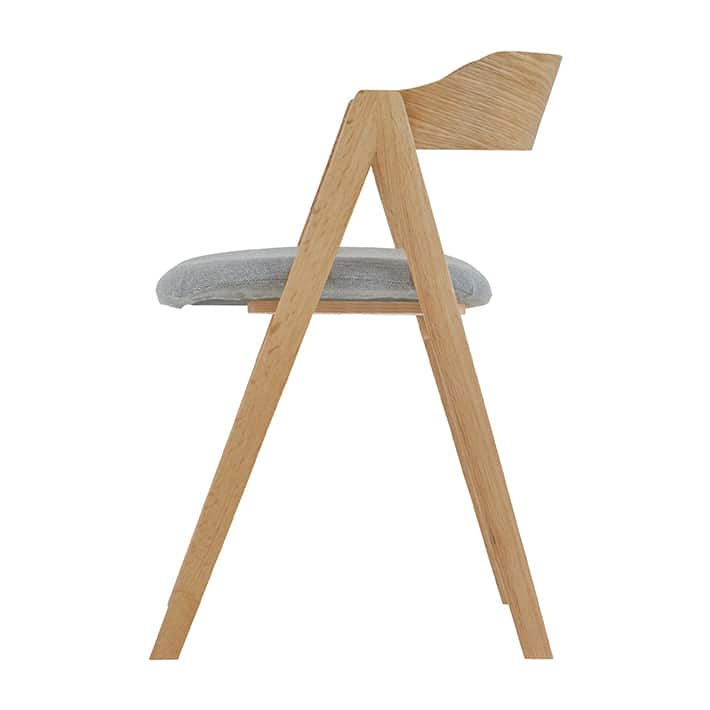 天然木の素材感が引き立つデザイン。シンプルながら、すっきりとしたシャープな脚部や、丸みのある背もたれ、短めのアームなど、細部のデザインにもこだわっています。