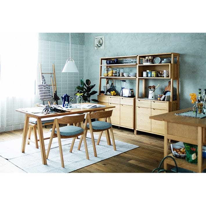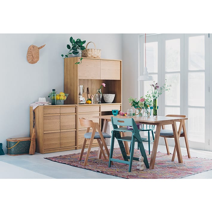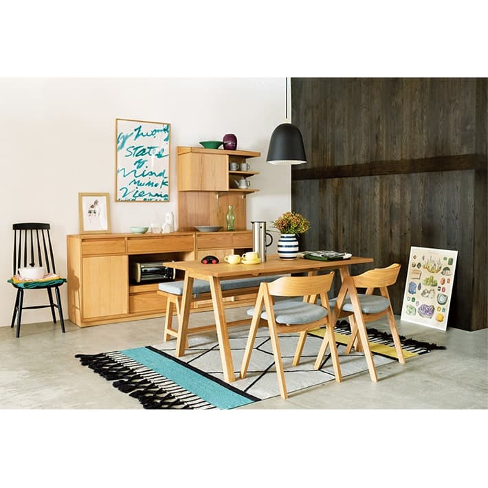 低めの背もたれが、腰をしっかりサポートしてくれます。他シリーズのダイニングと合わせてコーディネートするのもおすすめです。