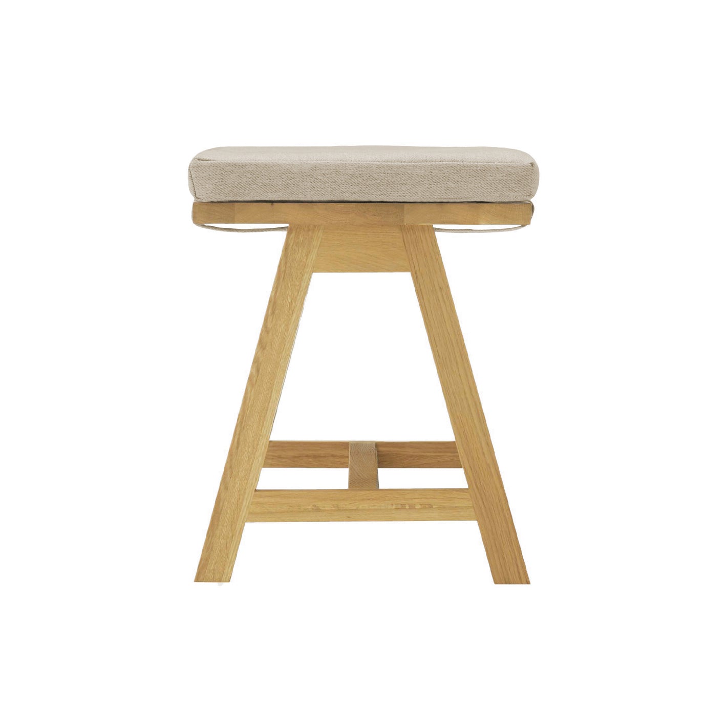 座面裏には、クッションをずれないように固定できるベルトが付いています。座面は、汚れても外してクリーニングできる、便利なカバーリングタイプです。