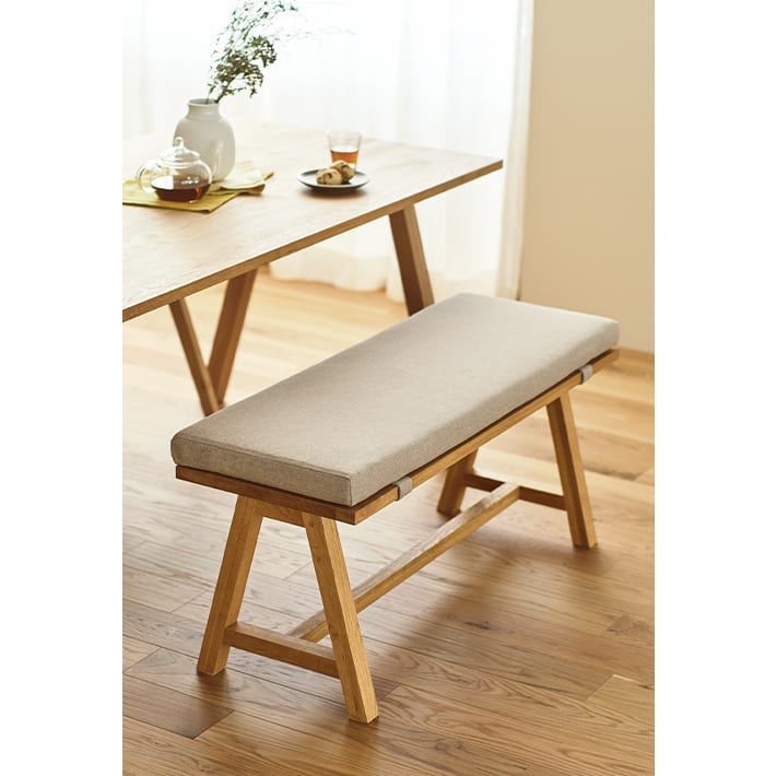 食事や作業もしやすい、過ごしやすい高さのベンチ。他シリーズのダイニングと合わせてコーディネートするのもおすすめです。