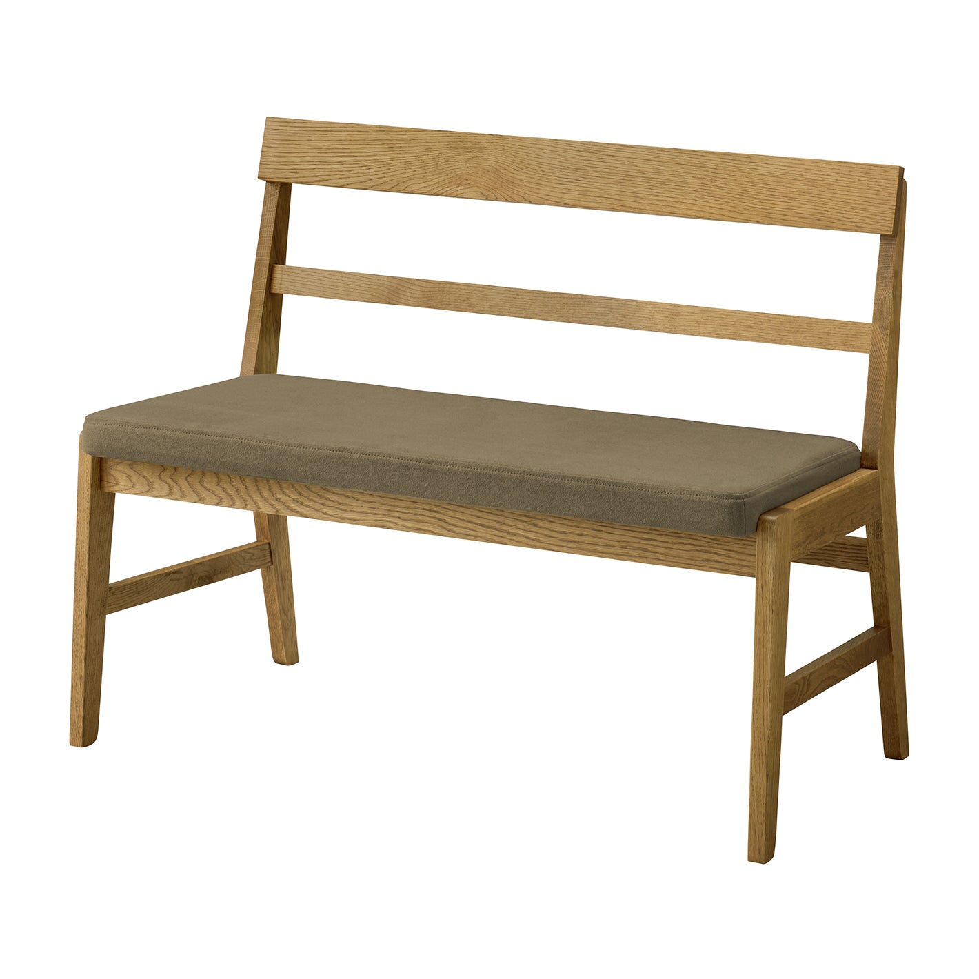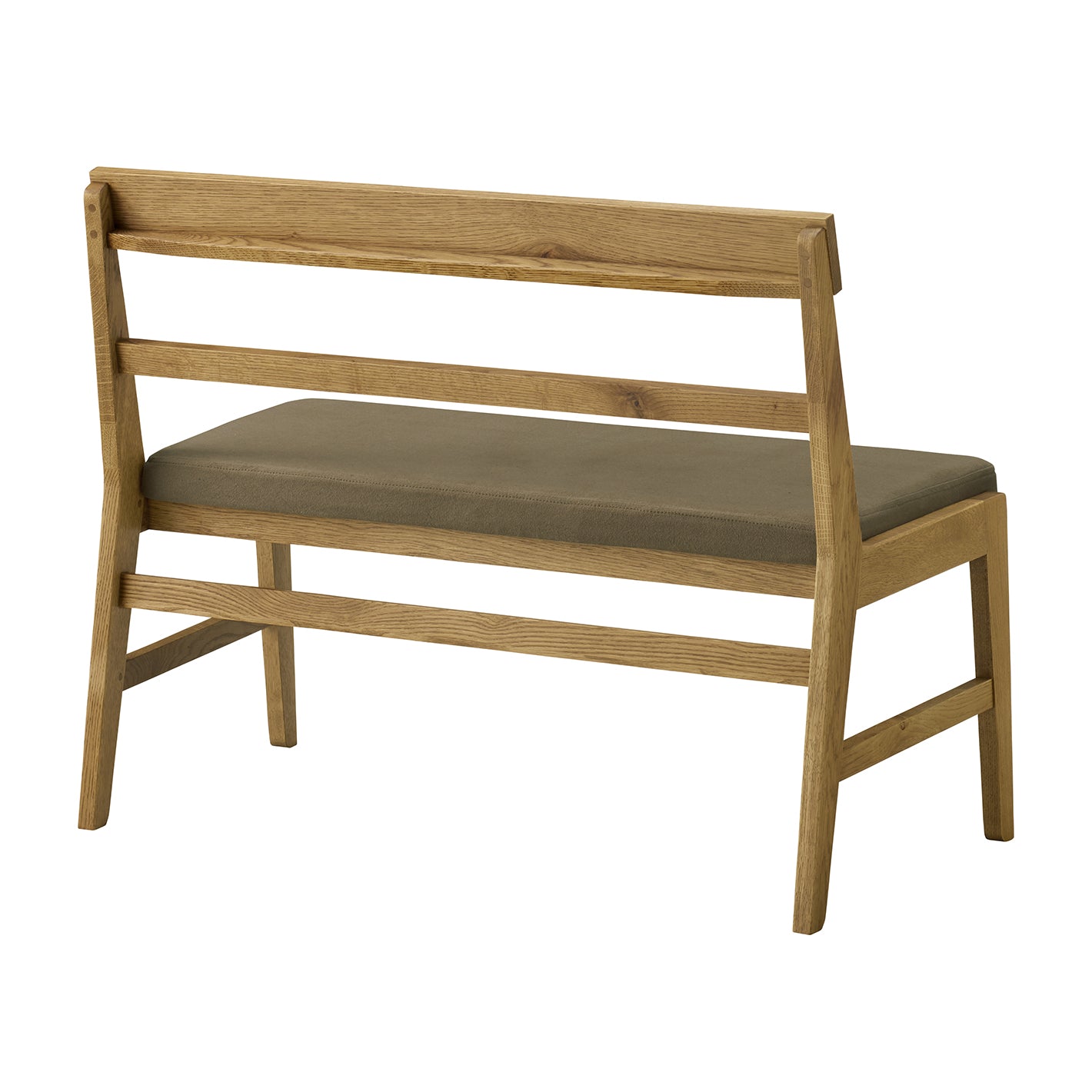木目や節など、オーク材の表情を生かしたカジュアルな印象のベンチバックレスト。