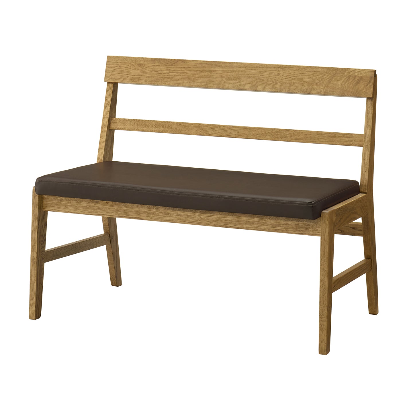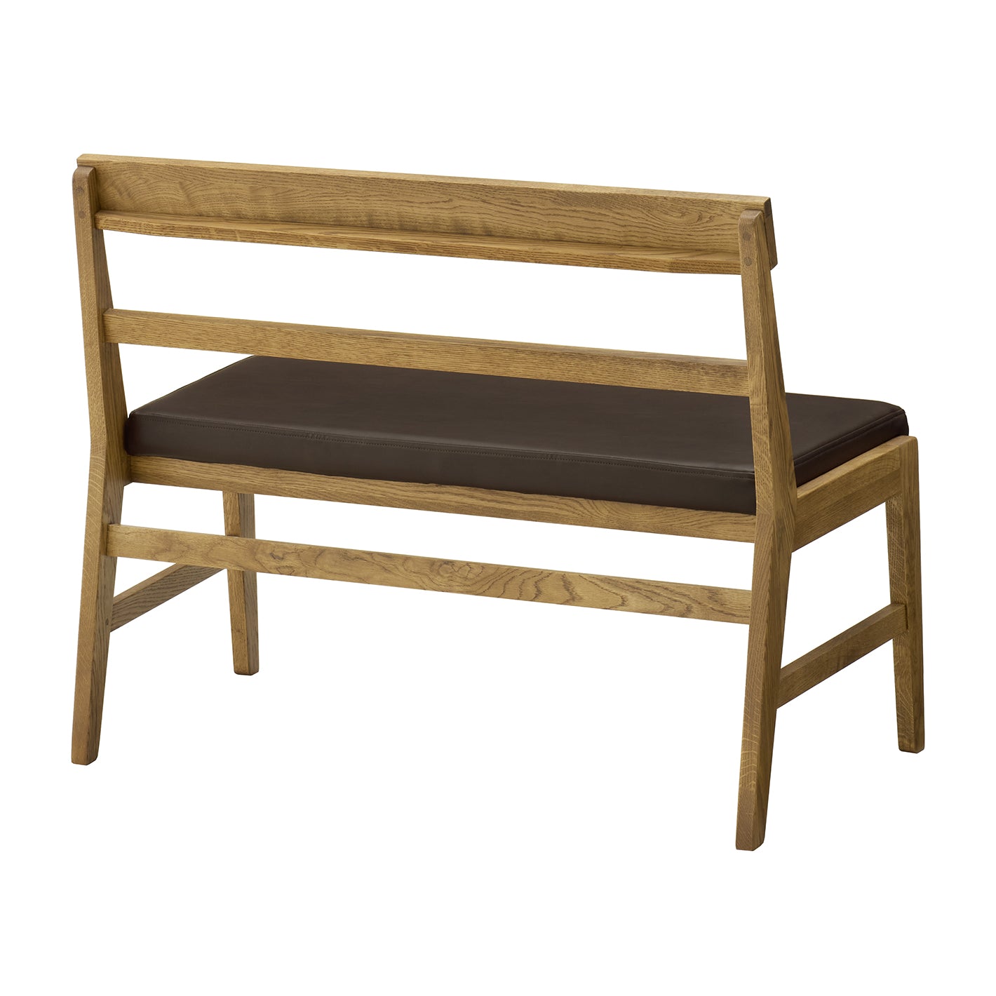 木目や節など、オーク材の表情を生かしたカジュアルな印象のベンチバックレスト。